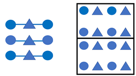 Having identified the elemental groupings, how do we emphasize them? Here we can turn to the Gestalt principles which are fundamental for understanding how humans pre-attentively detect patterns and groups. The primary idea behind the Gestalt principles is that the human brain strives to perceive groupings of individual entities; that is, aggregates rather than parts. The most relevant principles for table and figure design are enclosure, connection, proximity, and similarity. Consider the following: