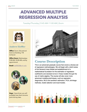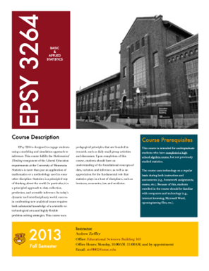The suggestions herein are only suggestions, and like all suggestions, can be ignored. A syllabus reflects not only the course content, but also the instructor. Have fun! Choose fonts, images, and palettes that reflect your personality. This will take a bit of time (I spend several days per syllabus), but I find it is worth the effort.